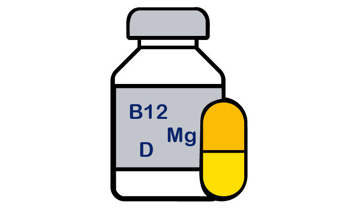 Vitamine und Nährstoffe: Aktives Vitamin B12 / Calcium, albuminkorrigiert / Folsäure / Magnesium / Phosphat / Selen / VitaminD / Zink